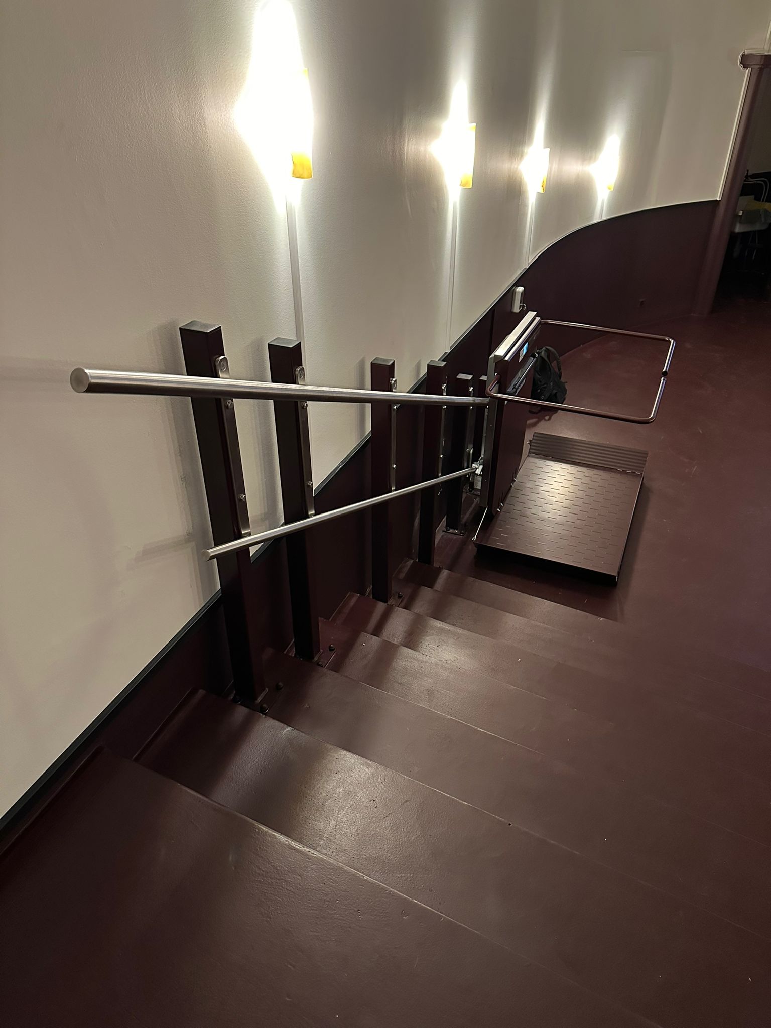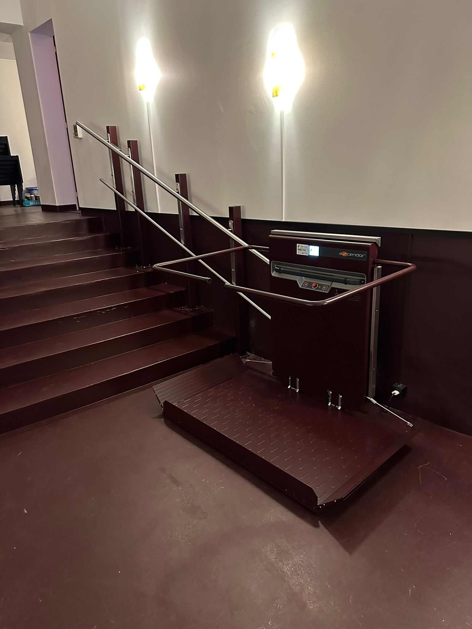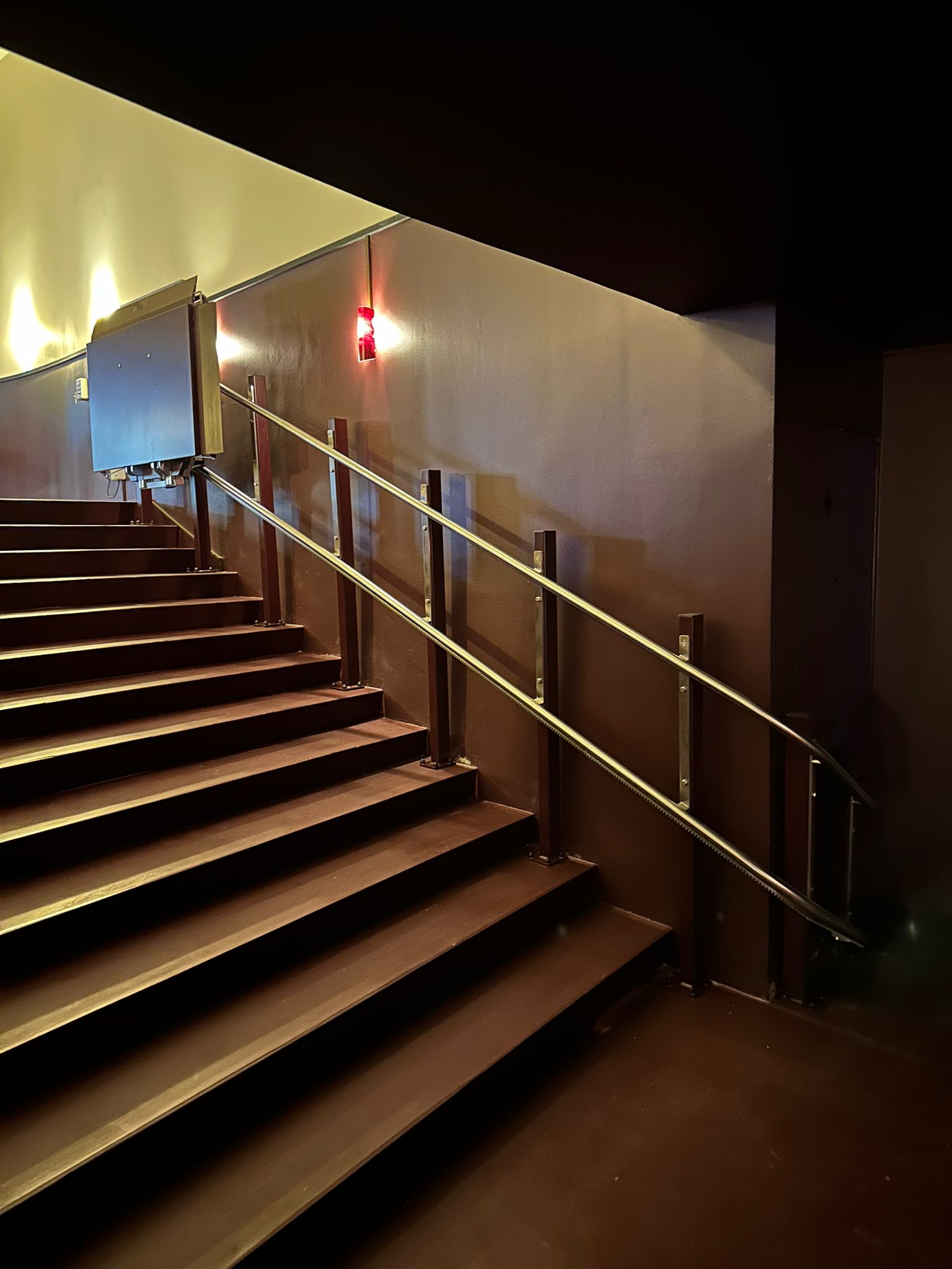 Nous avons installé 2 plateformes monte-escaliers lors de la rénovation du cinéma Korso à Fribourg.